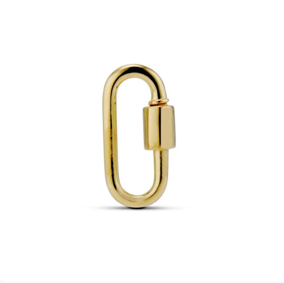 قطعة أنيقة وعملية مصممة لتضيف لمسة مميزة على مجموعة خواتمك. مصنوعة من الفضة الإسترليني ومطلية بالذهب عيار 14، وتتميز بمشبك محمل بنابض يسهّل عليك إضافة أو إزالة تعليقات أو قطع ثانية بكل سهولة.
